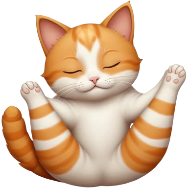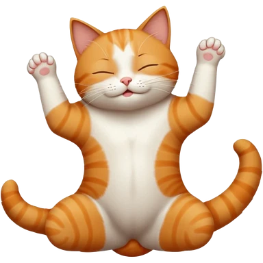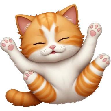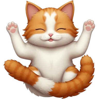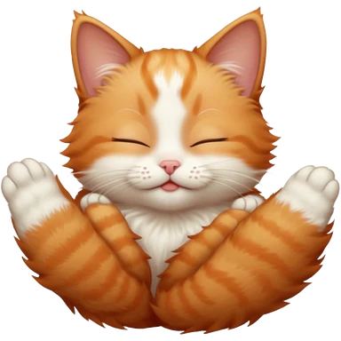 ginger and white small cat eyes closed lying down upside down with paws stretched out straight in different directions emoji