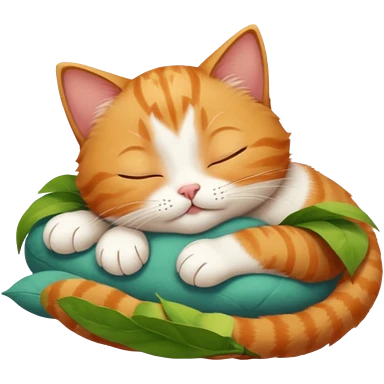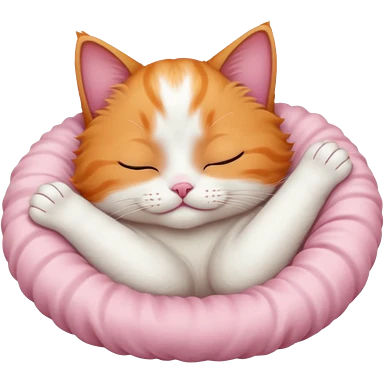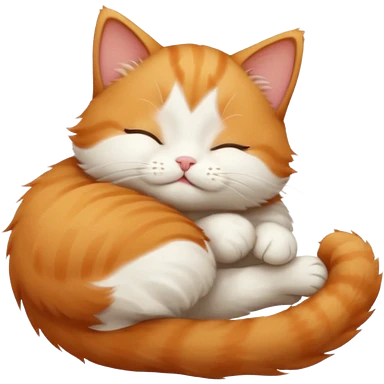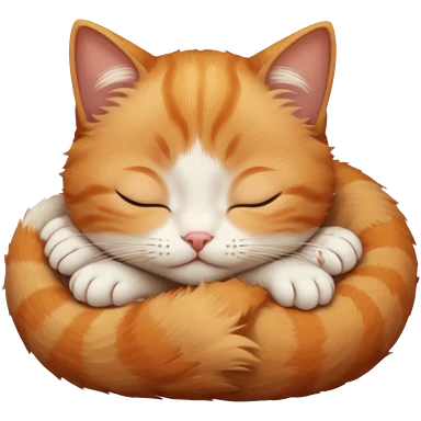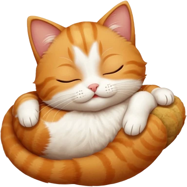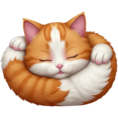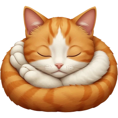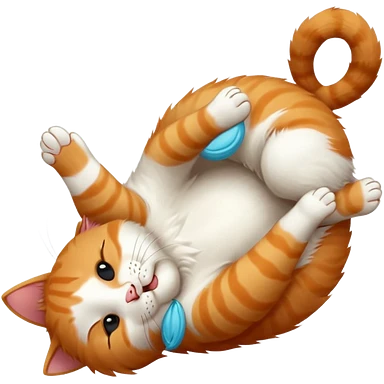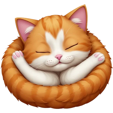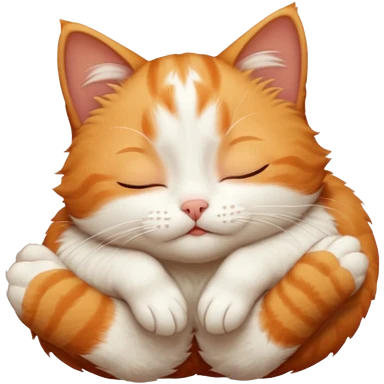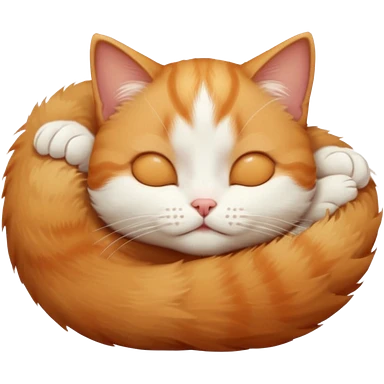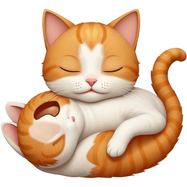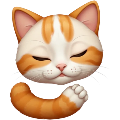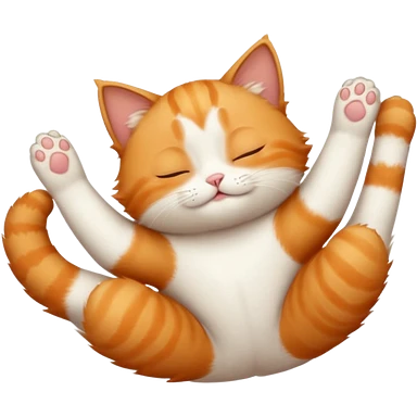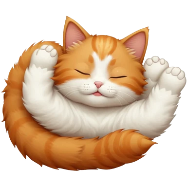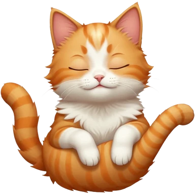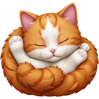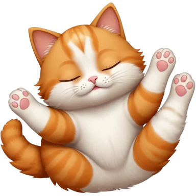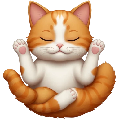 ginger and white small cat curled up with head upside down with eyes closed emoji