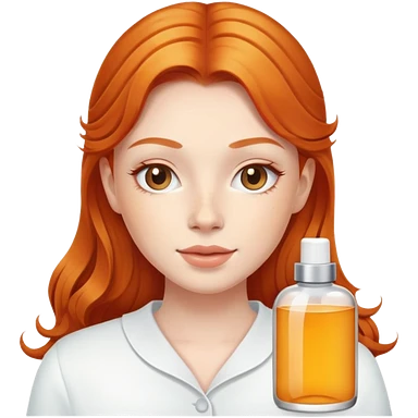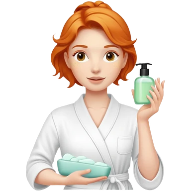 Ginger girl in white robe long wet hair relaxing skin care emoji