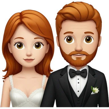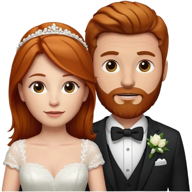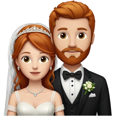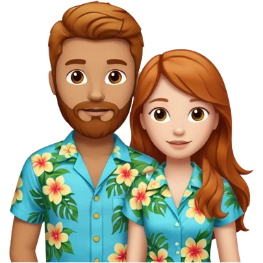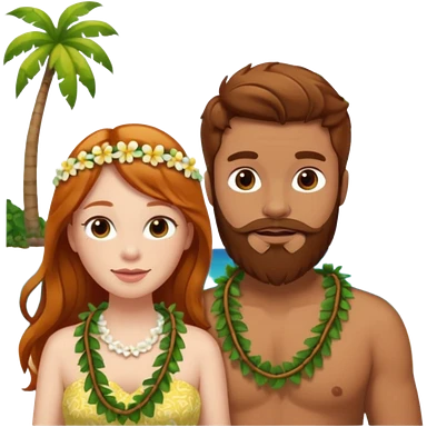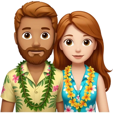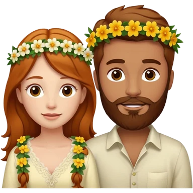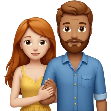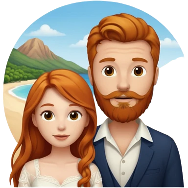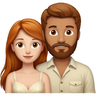 Ginger long hair girl, brown hair men with beard on honeymoon emoji