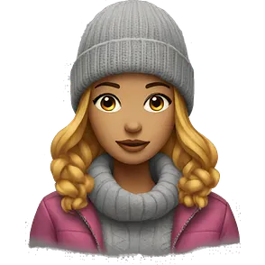 Girl with ginger hair wearing red beanie goggles and headphone emoji