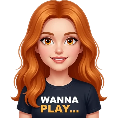 sexy girl with overlong ginger hair and ginger eyes a top with WANNA PLAY... written on it emoji