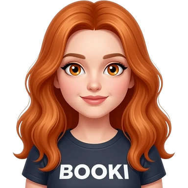sexy girl with long ginger hair and ginger eyes a top with BOOKI written on it emoji