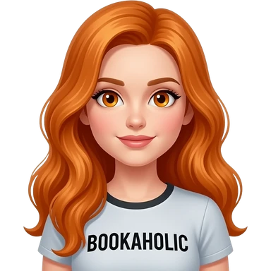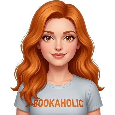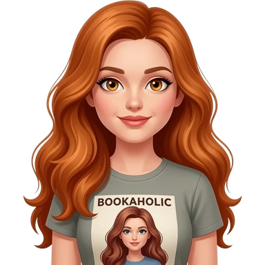 sexy girl with long ginger hair and ginger eyes a top with BOOKAHOLIC written on it emoji