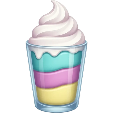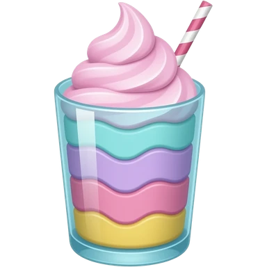 sundae dans un verre transparent, multicolore pastel, turquoise, mauve, rose, jaune, étagé emoji