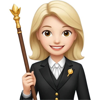 Blonde Wonder Woman holding conductor’s baton and bell emoji