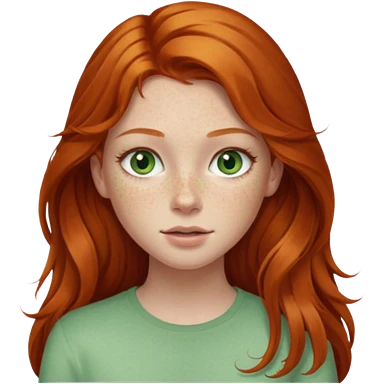 Beautiful ginger head girl with long hair and light green eyes emoji