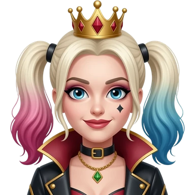create an emoji of a queen, with glasses, white skin, wavy hair in a tone somewhere in between blond and ginger emoji