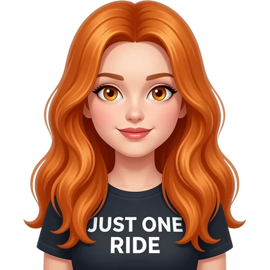 sexy girl with overlong ginger hair and ginger eyes a top with JUST ONE RIDE written on it emoji