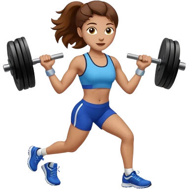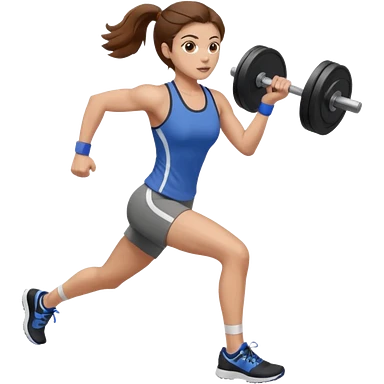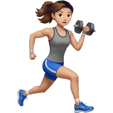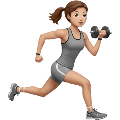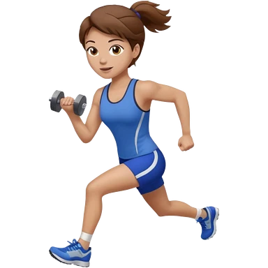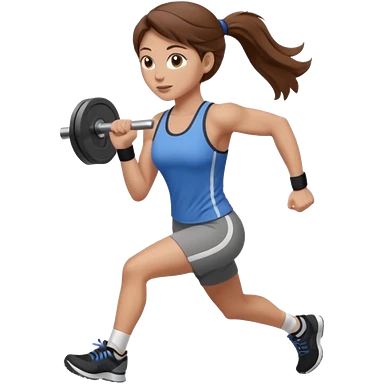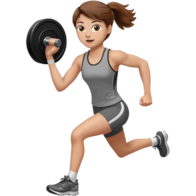 one women running and lifting weights. brown hair, light skin, hazel eyes. emoji