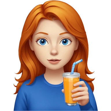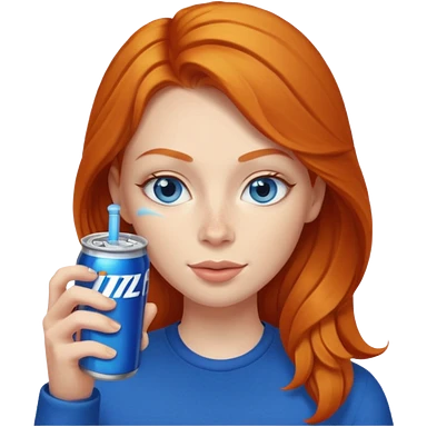 ginger woman short hair, pink shirt, sipping energy drink blue eyes cosy emoji | AI Emoji Generator