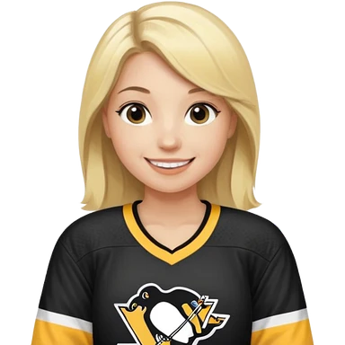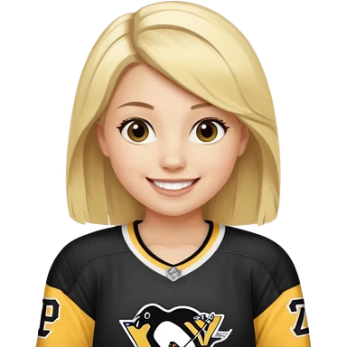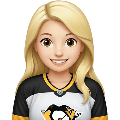 Girl long hair blonde with hockey jersey pittburgh penguins emoji