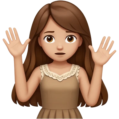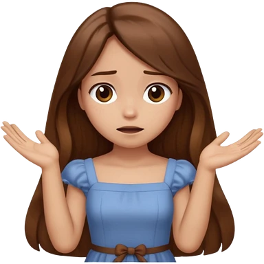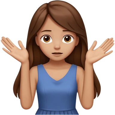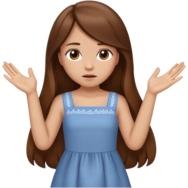 girl that doesn't care, she is like whatever, brown long hair, cute dress and her hands showing like i don't know whatever, make her look little bit bored emoji