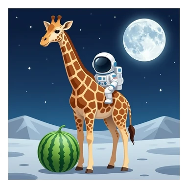 giraffe + watermelon + moon + astronaut emoji
