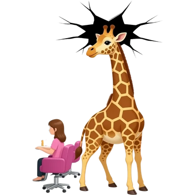 Giraffe to go in the beauty hair salon break the ceiling and roof climb the ladder to cut his hair emoji | AI Emoji Generator