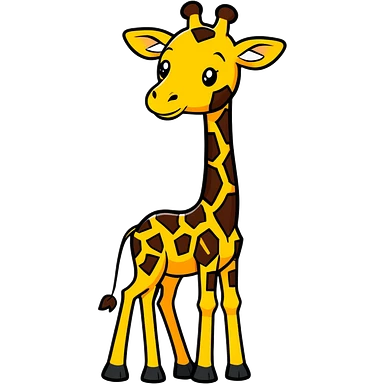 joyful cartoon giraffe dancing on hind legs, front hooves raised, big toothy smile, stars in eyes, bright yellow and brown, thick black outlines emoji