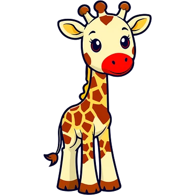 An adorable, blushing giraffe emoji with big, sparkly eyes, a shy smile, and exaggerated rosy cheeks. The design should be ultra-cute, with a rounded face and tiny features. Ideal for 'aww' or 'thanks' reactions in chat. emoji