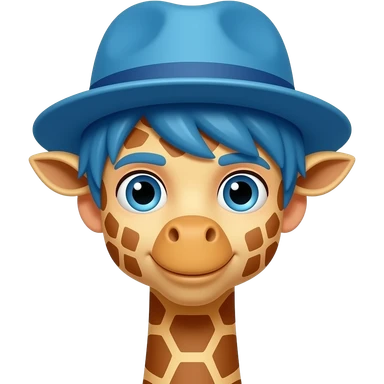boy giraffe with blue hair and hat, just face emoji