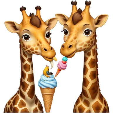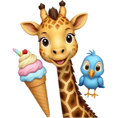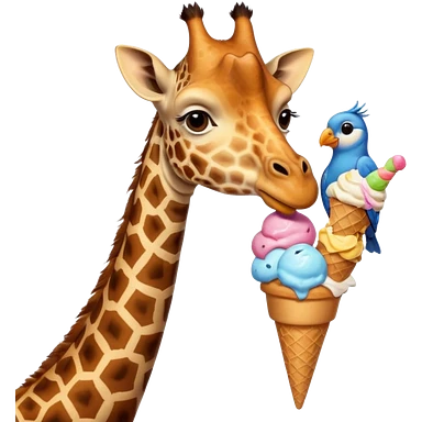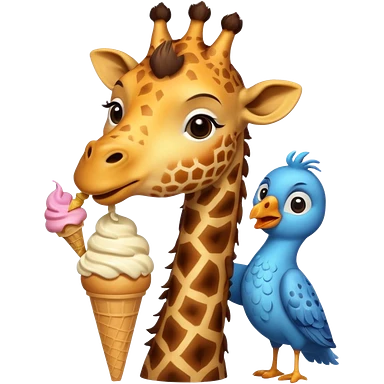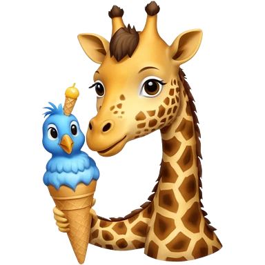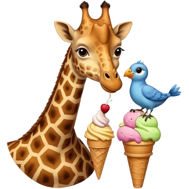 Giraffe with Ice Creams Giraffe sharing cone with bird emoji