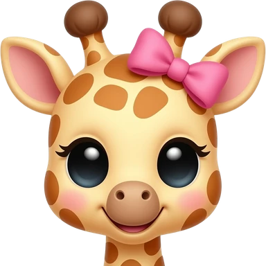 cute giraffee with a pink bow, baby giraffe face emoji