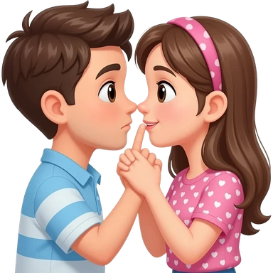 Girl with burnet- brunet hair kiss boy emoji