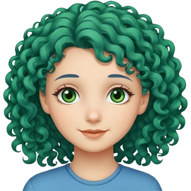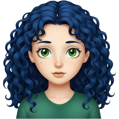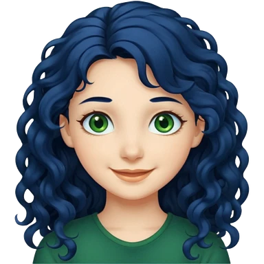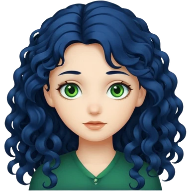 Girl with long curly dark blue hair, green eyes, and very fair skin. emoji