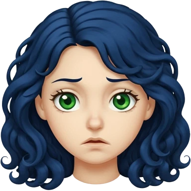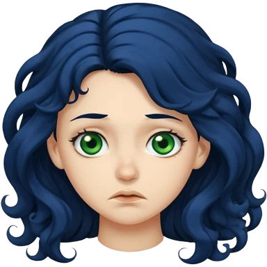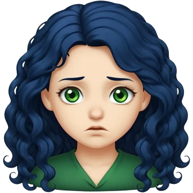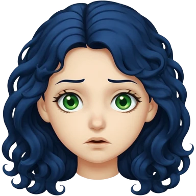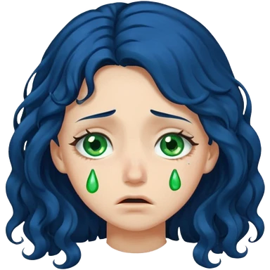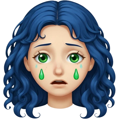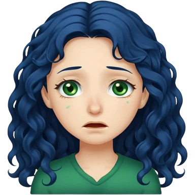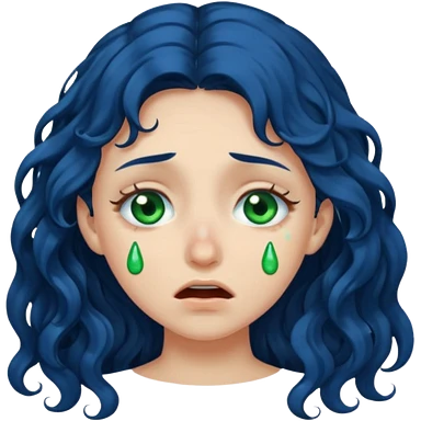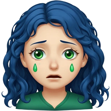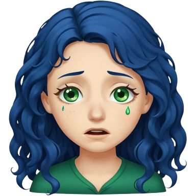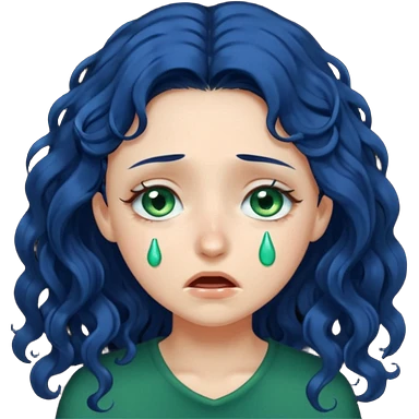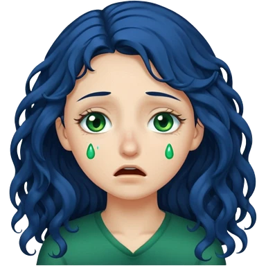 Girl with long curly dark blue hair, green eyes, and very fair skin.crying emoji