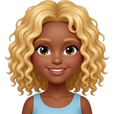 Girl with brown skin and blonde curly hair emoji