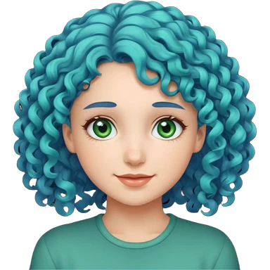 Girl with curly blue hair, green eyes, and very fair skin. emoji