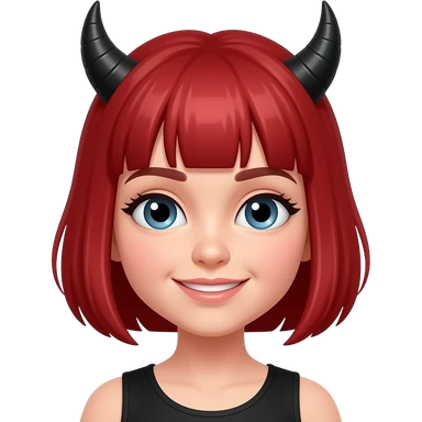 Girl red hair and black and white horns short hair emoji