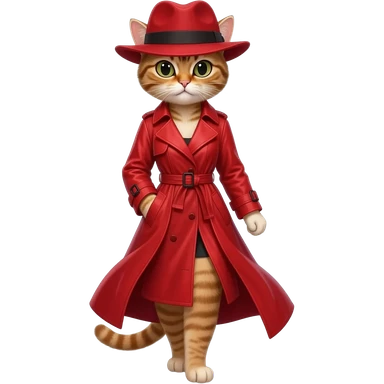 girl cat wearing red fedora flowing red trench coat emoji