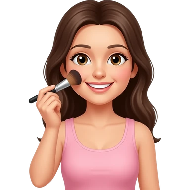 Girl wearing a light pink tank top applying blush with brush smiling emoji