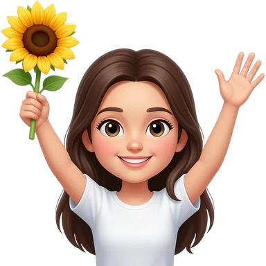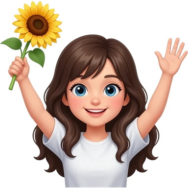 Girl with raising hands with a sunflower in one hand emoji