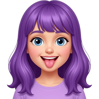 GIRL WITH LONG PURPLE HAIR STICKS TONGUE OUT emoji