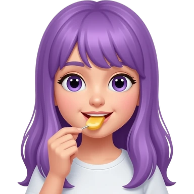 GIRL WITH LONG PURPLE HAIR IS EATING emoji