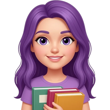 GIRL WITH LONG PURPLE HAIR WITH BOOKS emoji