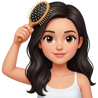 Girl taking care of her black hair with a hair massage comb, iPhone emoji style emoji