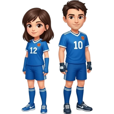 Girl with red eyes wearing a blue jersey. Have her standing back to back with a man version of her emoji