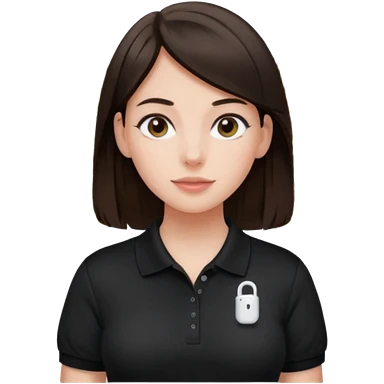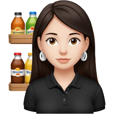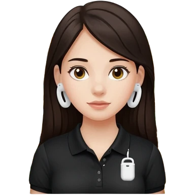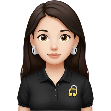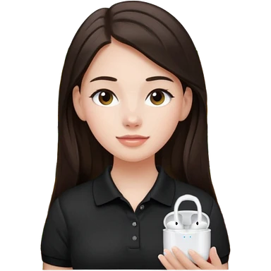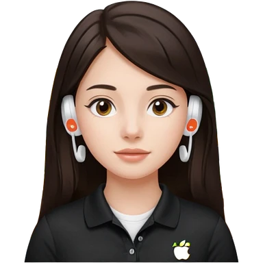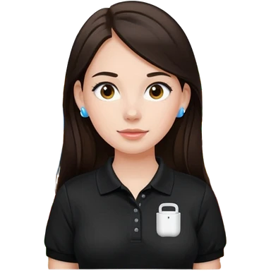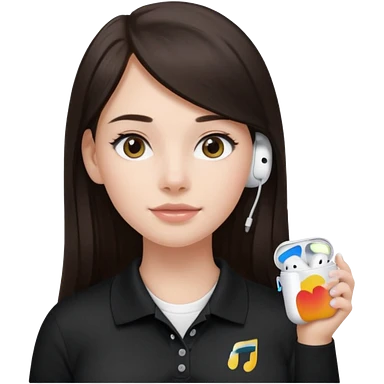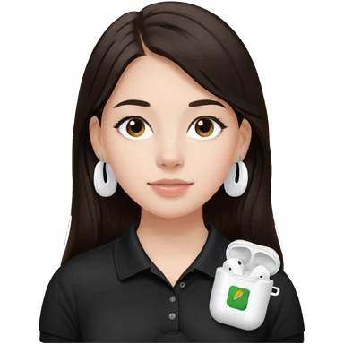 Girl with long dark brown hair with airpods wearing a black wegmans grocery store polo emoji