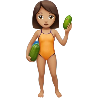 Girl pickle beside swimming pool emoji