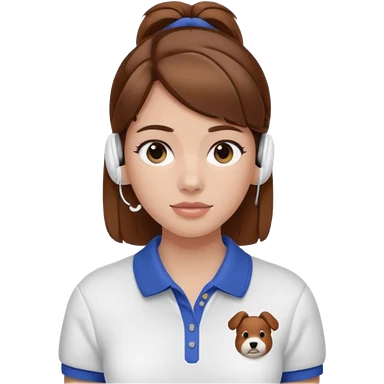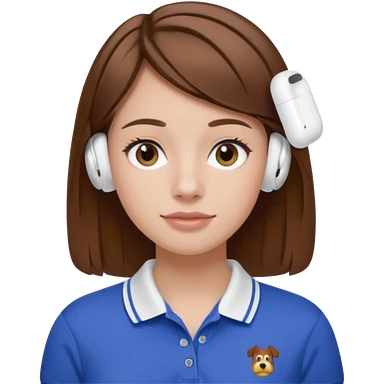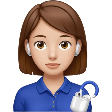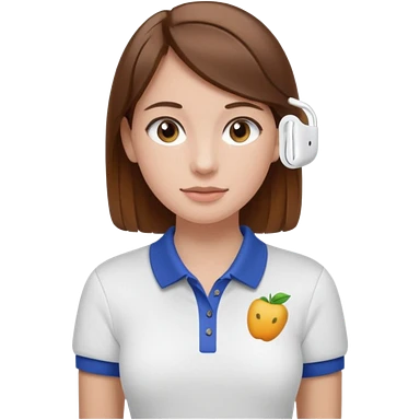 Girl with brown hair with airpods wearing a wegmans polo emoji