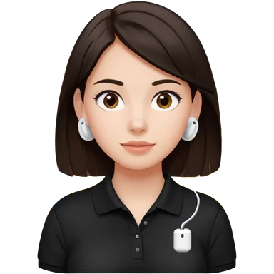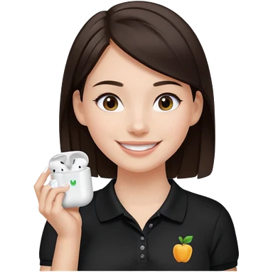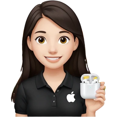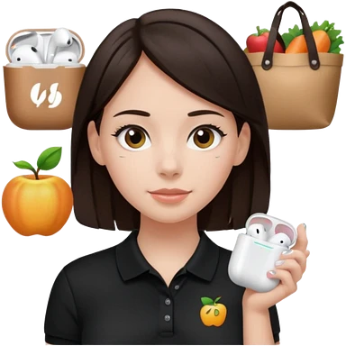 Girl with dark brown hair with airpods wearing a black wegmans grocery store polo emoji