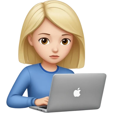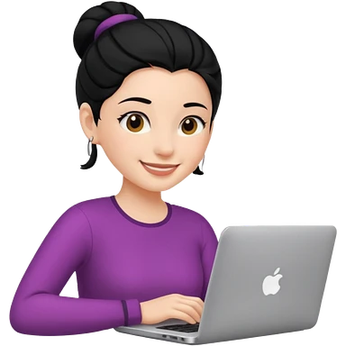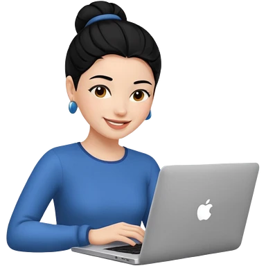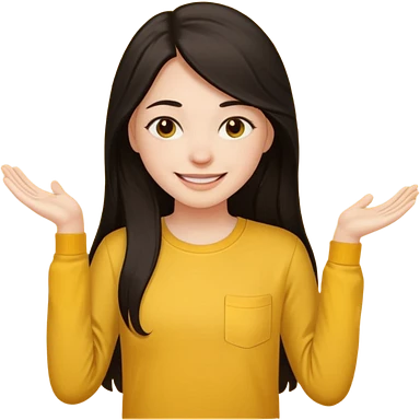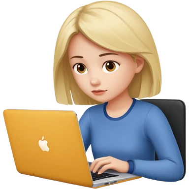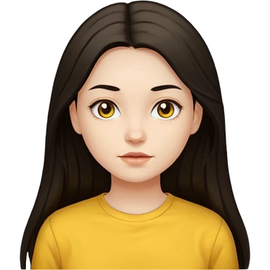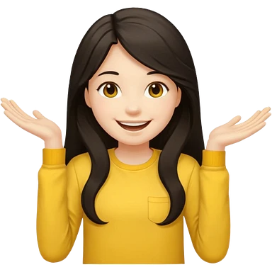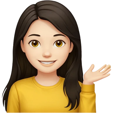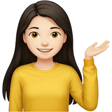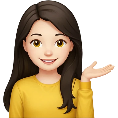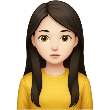 girl on a laptop, long dark hair white skin and yellow shirt long sleeves emoji