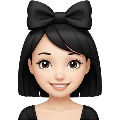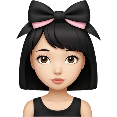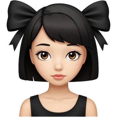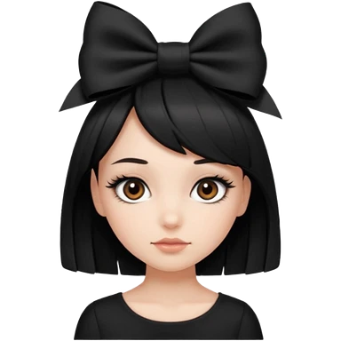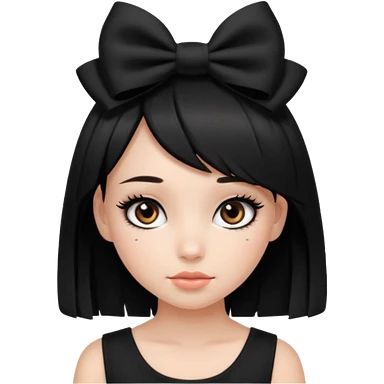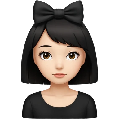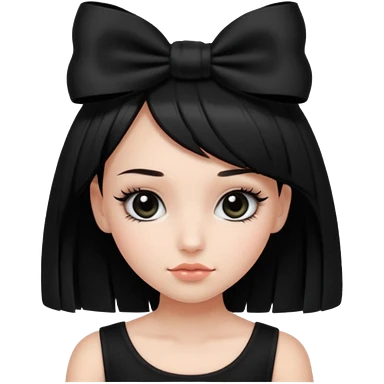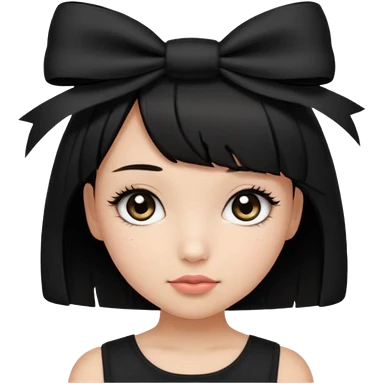 Girl with black cute bob cut with a black top and a bow on her head with long lashes emoji