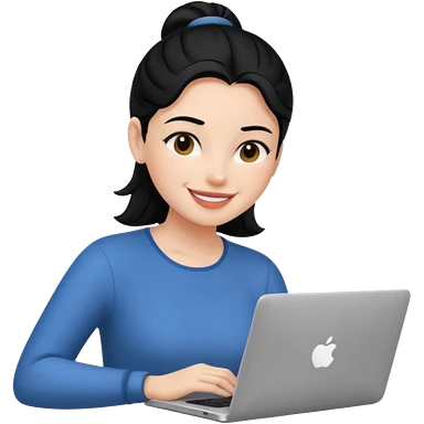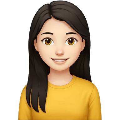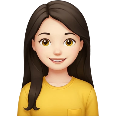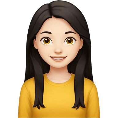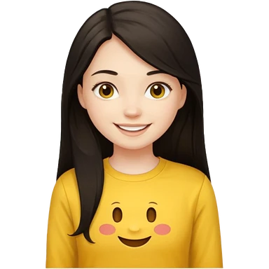 girl on her laptop, long dark hair white skin and yellow shirt long sleeves, smiling emoji