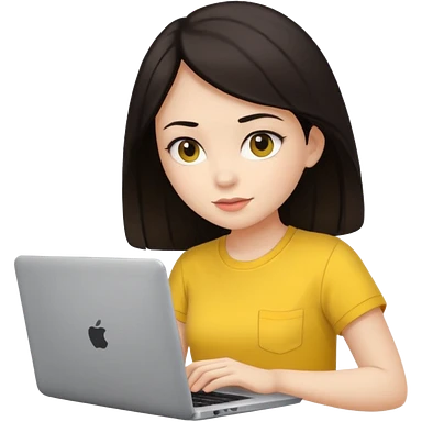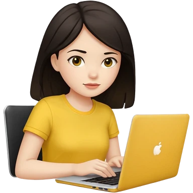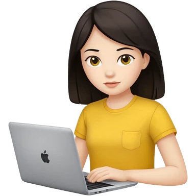 girl on a laptop, dark hair white skin and yellow shirt emoji