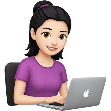 girl using her laptop smiling and black hair backwards emoji