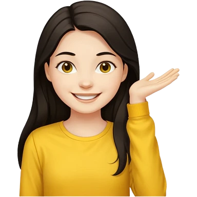 girl on a laptop, long dark hair white skin and yellow shirt long sleeves, smiling emoji