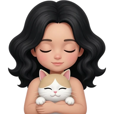 Girl with black wavy hair and she is white, sleepy with cat emoji