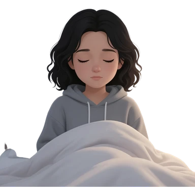Girl with black wavy hair sleepy emoji